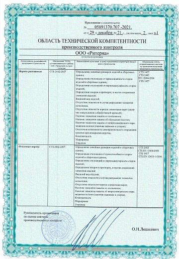 ООО «Ритерна» регулярно проходит процедуры сертификации, что гарантирует стабильное качество, надежность и соответствие продукции заявленным характеристикам.