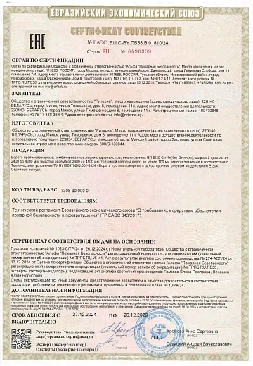 Документы подтверждают соответствие продукции требованиям технических регламентов, государственных и отраслевых стандартов, а также нормам безопасности и надежности эксплуатации.